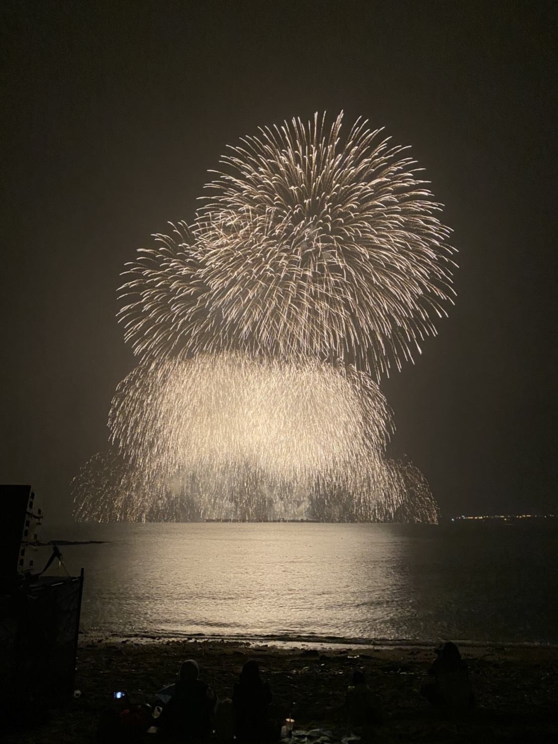 夏とは違いクリスマスソングなどが流れるなかでの花火も